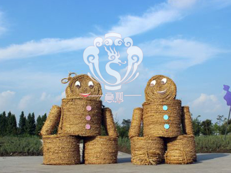 現(xiàn)在的精致稻草人藝術(shù)通常是由專業(yè)美術(shù)老師的造型放樣,然后由焊工師傅焊接出立體造型造型,然后以稻草或者稻草繩為材料編捆制作而成。