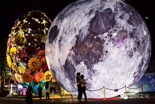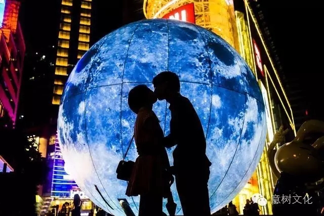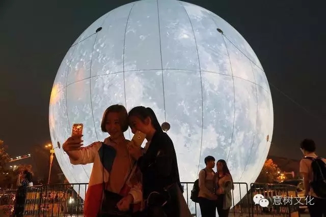 2015年9月15日晚,廣州市天河區維多利廣場外的“大月亮”露臉,這個“超級大月亮”高約兩層樓,采用超薄環保材料打造而成。入夜后,“月球”發出潔白光芒。創意團隊與美院學子聯合締造互動裝置藝術,可愛的Q版兔子背著火箭筒作登月狀,留給市民扮演嫦娥、吳剛,又是一個自拍過節的好去處。據了解,類似的裝置藝術展還可以在廣州西城都薈與花城廣場找到。