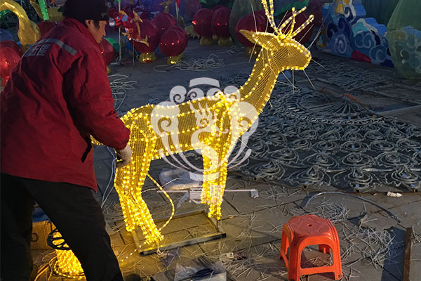 自貢意樹文化傳播公司此次為深入了解鹿知識(shí)鹿文化,由設(shè)計(jì)總監(jiān)帶隊(duì)趕赴北京鹿世界主題公園實(shí)地參觀了游客、飼養(yǎng)員與鹿的互動(dòng)、周邊農(nóng)副產(chǎn)品。我公司于4月8日派遣80名技藝精湛的彩燈制作工人經(jīng)過(guò)15個(gè)日夜趕工,終于如期在4月24日為北京市民呈現(xiàn)了這場(chǎng)“最美”夢(mèng)幻燈光嘉年華。