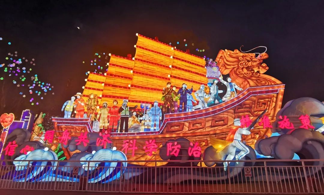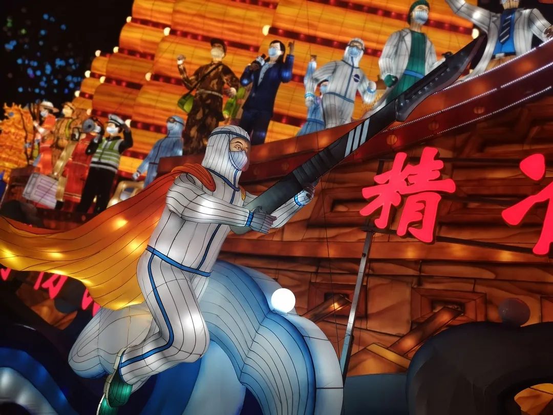 此次燈會以“春回大地、燈耀世界”為主題,是全國首個抗疫主題燈會,自貢燈會用精心創作的一組組彩燈還原了抗疫一線的“戰士們”的大無畏精神。