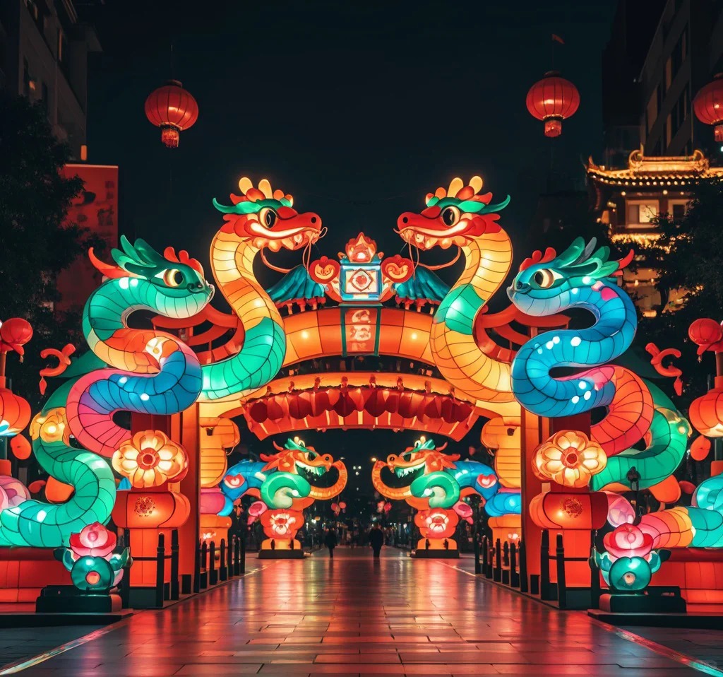 蛇年彩燈,不僅僅是一種裝飾,更是一種文化的傳承與表達。在中國傳統文化中,蛇被視為神秘、智慧和靈性的象征。這些彩燈以蛇為主題,既展現了人們對傳統文化的尊重與熱愛,又寄托了對新一年的美好祝福。在這五彩斑斕的燈光中,人們仿佛感受到了蛇的神秘力量,也感受到了新的一年所帶來的希望與活力。