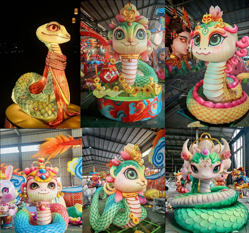 除了大型的蛇形彩燈制作,還有許多小巧玲瓏的彩燈散落在各處。有的做成了可愛的小蛇掛件,隨風搖曳,發出清脆的聲響;有的則是蛇形的燈籠,溫暖的光芒照亮了人們前行的道路。孩子們在彩燈間穿梭嬉戲,歡聲笑語回蕩在夜空中。他們手中拿著小小的蛇形玩具燈,臉上洋溢著純真的喜悅,仿佛在這璀璨的彩燈世界中找到了無盡的歡樂。