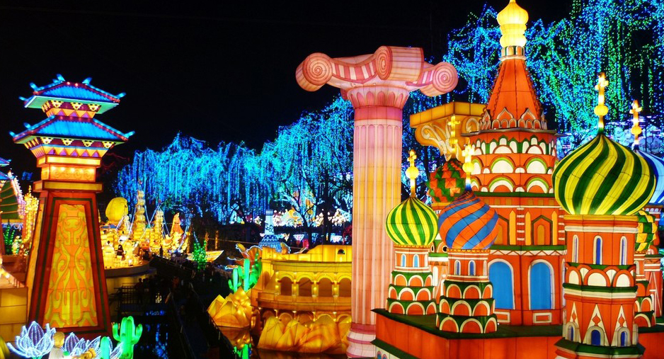 沿著絲路新圖,自貢彩燈點亮一帶一路沿線國家和地區,打開以燈會友、以燈通商的絢麗畫卷。