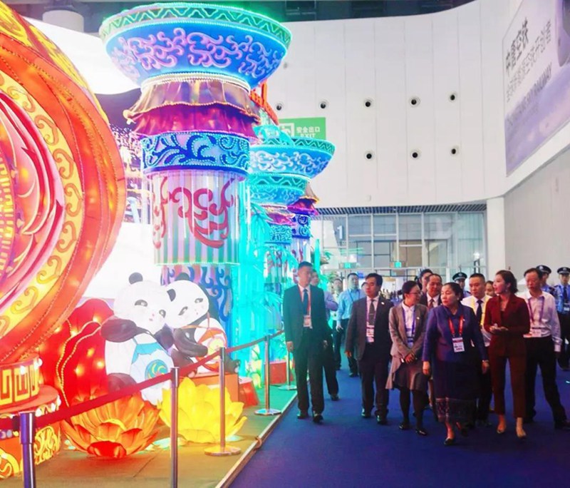 近年來,在中華文化的輸出上,自貢彩燈做出了自己的貢獻,自貢燈會頻頻亮相國際重要舞臺,以燈為媒,讓世界感受中國的文化魅力。作為此次西博會唯一的自貢彩燈代表企業,在本屆西博會上帶來了傳統技藝與現代光源完美結合的自貢彩燈,老撾國會副主席西賽等老撾政要,都慕名來到集團燈組前參觀。彩燈之鄉集團旗下中藝文化總經理朱家祥向各領導和嘉賓們介紹了自貢彩燈一帶一路環球燈會的實施情況,并提出如有機會愿在老撾舉辦的構想,西賽對此表示了歡迎。