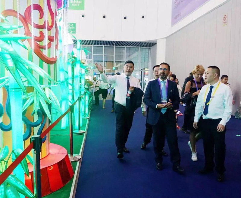 下午四時許,作為本屆西博會主賓國的意大利貴賓一行來到展位參觀,精美絕倫的燈組引得各領導與來賓頻頻稱贊,剛與集團簽訂了“2019年意大利帕多瓦‘中國之光’國際燈展”項目的意方表示在觀看了集團精彩的作品展示后,對于接下來即將展開的合作更加充滿信心和期待。