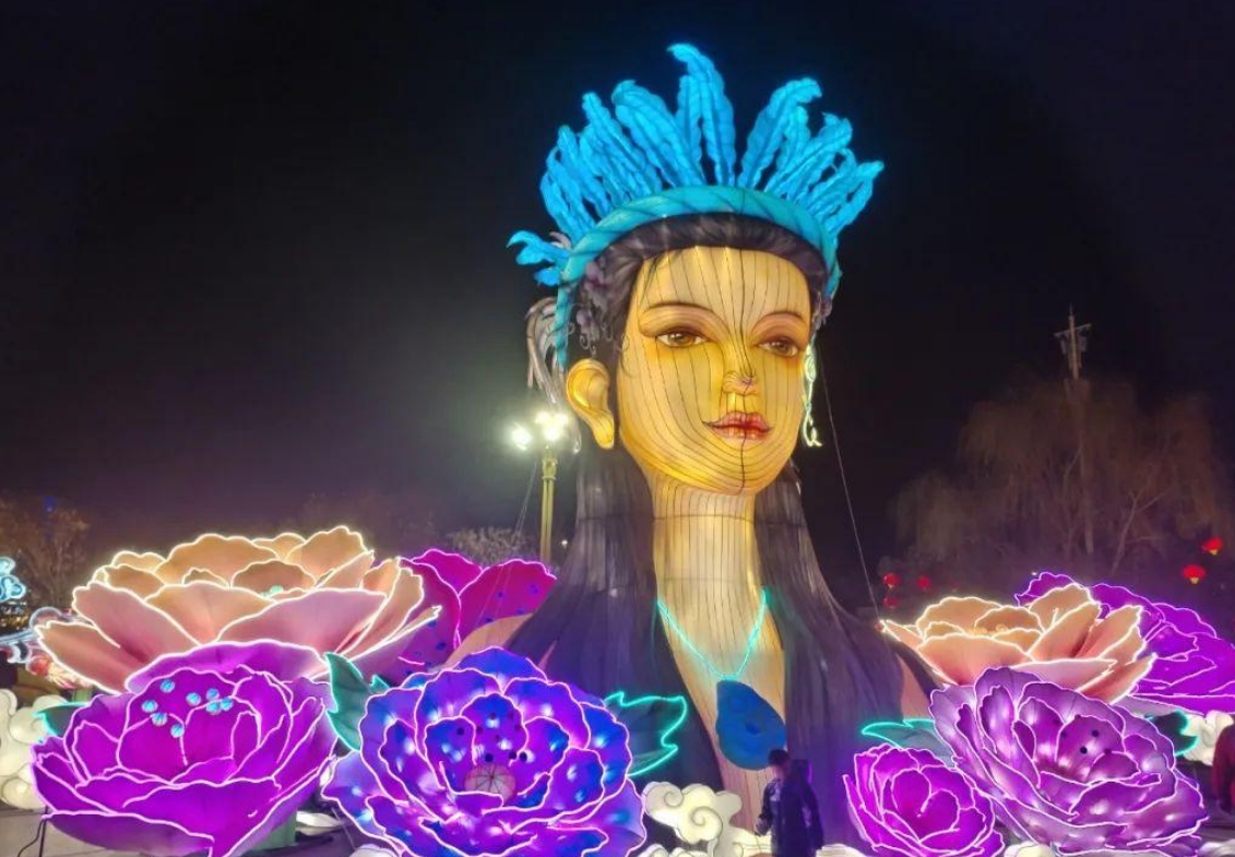 大型燈組“龍騰盛世”,創意源于朝陽三燕龍城宮城南門遺址,城門兩側設置雙龍騰躍的龍年主題造型,寓意龍騰盛世的繁華景象,體現朝陽作為三燕古都的厚重歷史。“金步搖”主題燈組,創意源于三燕時期的精美文物—花樹狀金步搖,這是當時慕容鮮卑佩戴的一種特有裝飾物,是古代絲綢之路東傳的實物例證,具有鮮明的北方民族特色文化。“宮燈柱”燈組裝飾在廊道兩側,打造出穿越三燕龍城的時光隧道,彰顯朝陽三燕時期龍城盛世的景象。大型燈組“紅山女神”,是以在朝陽牛河梁遺址出土的紅山女神復原雕塑為創意創作,讓市民游客在觀燈的同時還能深入了解朝陽作為“文明發端地、古國牛河梁”的悠久歷史。大型燈組“世界上第一只鳥”“世界上第一朵花”,是以中華龍鳥、遼寧古果造型為主題創作,讓廣大游客感受朝陽古生物化石的神奇與魅力。大型燈組“鳳鳴朝陽”,創意源于《詩經·大雅·卷阿》的典故,展現雍容祥和景象。