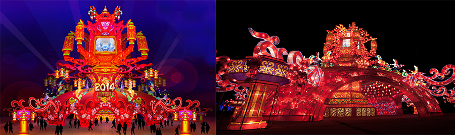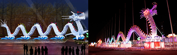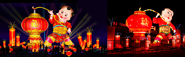 本屆花燈展將融傳統的制燈工藝與現代科學技術于一體,通過LED電腦芯片程序控制燈光動感,聲效芯片控制,動作芯片控制情節動作等,80余組大型燈組,規模宏大、氣勢恢宏,把太原多姿多彩的城市風情、民俗風物,經花燈特有藝術手法和高科技手段精準獨到鋪陳,靈動細膩的再現,惟妙惟肖的演繹給了觀眾。眾多花燈中最亮眼的還數名為“祥和龍城”的“燈王”,占地近2500平米,高20余米,行人可在花燈下自在穿梭,可謂“燈樓高百尺、手可摘星斗”;室內6號展館的100多件仿真恐龍,把游客仿佛帶回到了“侏羅紀”時代,其間的動感6D電影讓大家在各種驚險、刺激的環境里親身體驗了讓血液沸騰、讓心臟尖叫、讓細胞歡呼的真實感,深受歡迎。